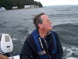 We left port around 12:30 after a nice lunch at Mike’s Bistro.  After leaving the charming port of Langley, while getting ready to hoist the sails, a bee stung me on the neck.  I’ve never been stung by a bee.  I’m very happy to be not allergic to bees.  After sailing for an hour or so Mark hoisted the spinnaker.