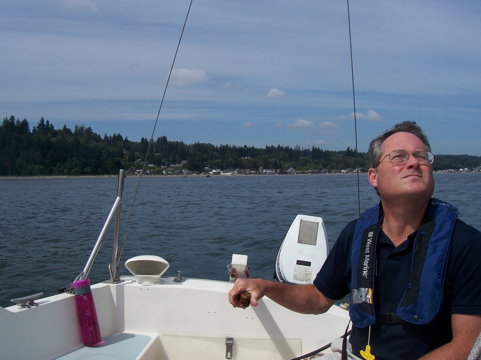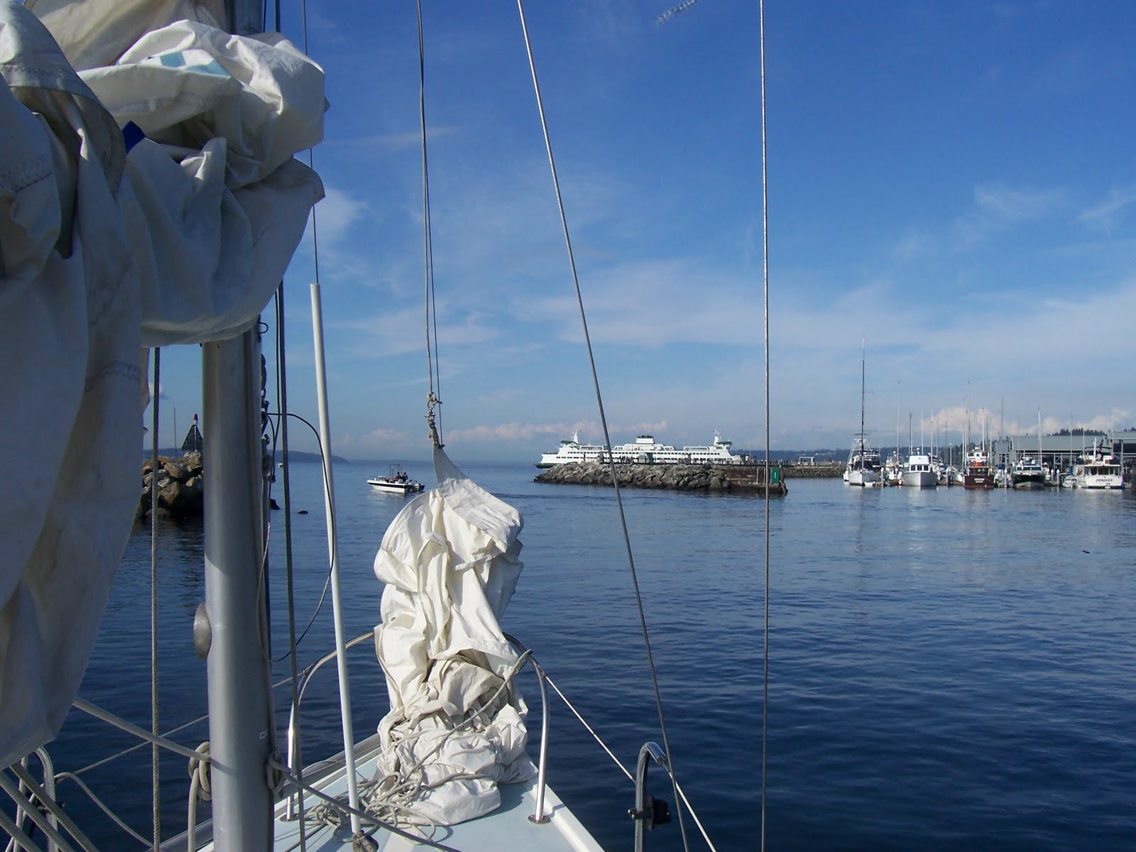 We had fun finding the different landmarks on the coast that we had perused on the navigational charts. We sailed down to Picnic Point. Picnic Point Elementary is in the area. Alyssa and Sarah had attended this school when we lived in the Harbour Pointe area of Mukilteo. From Picnic Point on, we had a good view of Edmonds. It was still a few miles away but we were able to clearly see the Edmonds to Kingston ferries.
