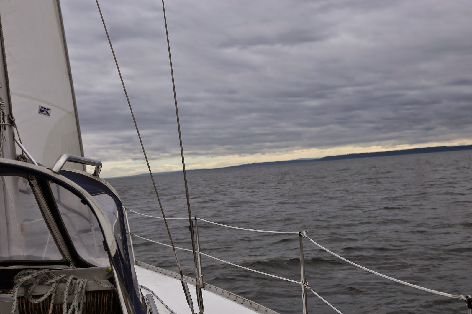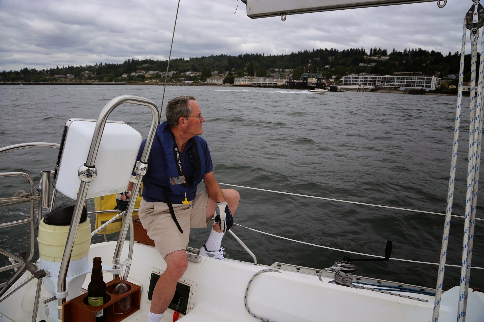 We got a late start on our sail.  I don’t think we were underway until 3:30 pm.  We sailed to the southernmost tip of Whidbey Island, Possession Point.  Mark and I had only sailed there twice before.  Once when we went to Edmonds for lunch, and the other time with Kathy and Dana.  It was a lot faster in the new Jeanne Marie.  She is a much quicker sailboat.