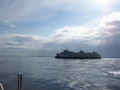 We were also able to see the southern tip of Whidbey Island. The water was so smooth on Puget Sound. Since it was cloudy the water appeared a grayish blue-green. Little pattens appeared in the smooth water reminded me of a paisley pattern. In the future I hope to use this inspiration in a quilting pattern on my nautical quilts.