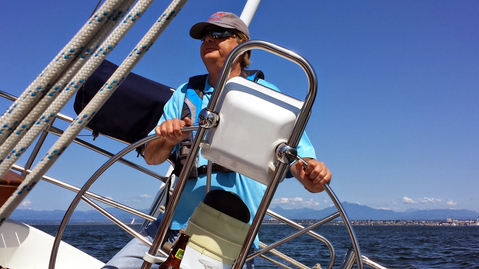 Our sail for the day took us around Gedney Island aka Hat Island. We swung very wide around Hat Island and after tacking around the south and west side of the island we were able to “run” most of the way back to Everett. Once again, this is a very fast sailboat in comparison to the first (24 ft) Jeanne Marie. I think she may sail faster than when she is under power.